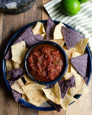 Here is a homemade salsa with a delicious smokey chipotle flavor that you can whip up in minutes with canned tomatoes and your food processor. It’s the easiest salsa to make because there’s no knife needed! Just grab some chips and dig in!