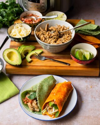 If you’re looking for a good taco filling, this might be the answer for you. Fill your tortillas or top your nachos with this tender shredded chili-lime flavored chicken that you can make in minutes in your pressure cooker. This is another dish that is easy to freeze for a rainy day, so make a big batch.
