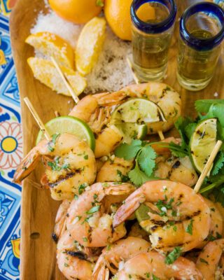 This flavorful shrimp marinated in tequila and lime juice makes a great taco filling. Cooking the shrimp in the shells gives them more flavor, but you could go with peeled shrimp if that’s what you can find. Or you can serve them peel and eat style which go perfectly with a shot on the side. 😉