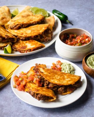 Let’s start it off with a fan favorite. These crispy tacos filled with beef and a homemade taco seasoning, always get the party started! Make sure you grab a plate or a napkin with this crispy tacos and get ready to hear the crunch.