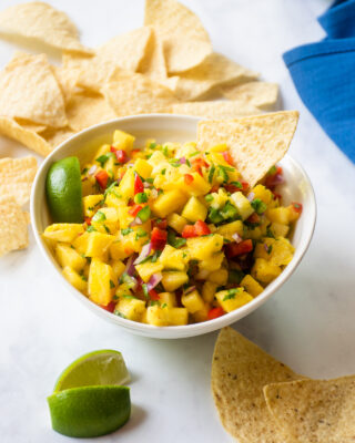 Speaking of salsa… there are so many different varieties possible. This homemade fresh pineapple salsa has a sweet flavor and is great with fish, chicken, and plain old tortilla chips too! It gives you a little tropical touch that is such a delight with Mexican spices and foods with a little kick.