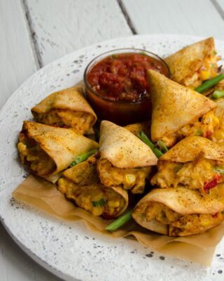 Great way to serve nachos for a party because all the toppings are folded up in little tortilla triangles. These fun-to-make apps are sure to disappear fast! But… be warned that it’s very hard to have just one of these treats.