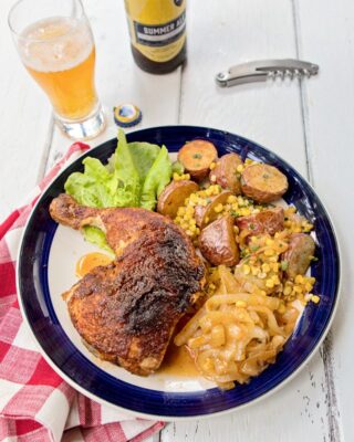 You can use your air fryer to cook recipes that have instructions for cooking in the oven. Because the heat in the air fryer is more intense than a standard oven, reduce the suggested temperature by 25ºF to 50ºF and cut the time by roughly 20%. So, if a recipe calls for cooking in the oven at 425ºF for 60 minutes (like the Summer Ale Chicken, for instance), instead you can air-fry the food at 400ºF for about 40 minutes.
