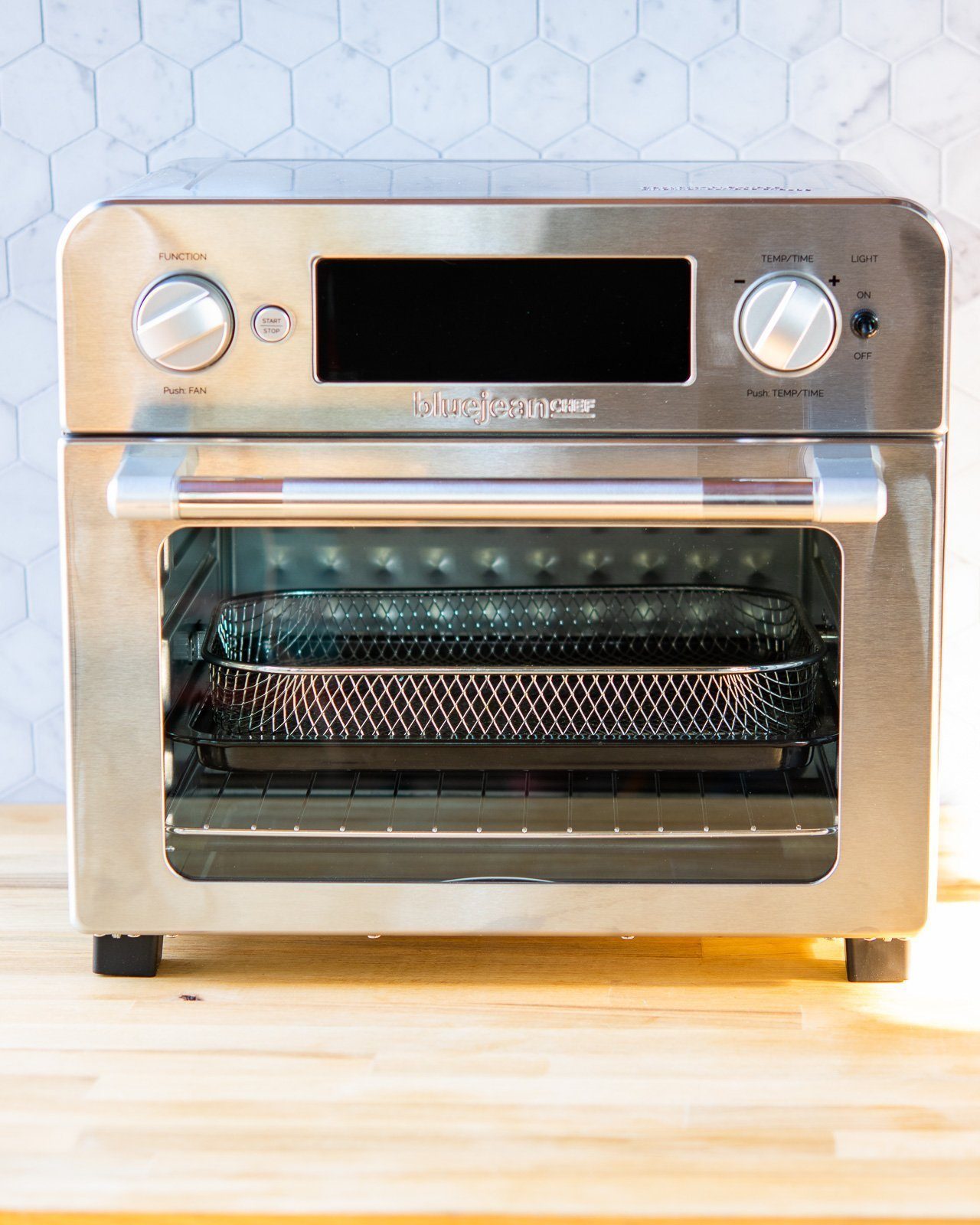 Hi Jane. You’re not alone – it is confusing. Air fryers and convection ovens are very similar – they heat air with an element and then blow it around with a fan. What distinguishes an air fryer from a convection oven is the placement of the fan in relation to the heating element. Air fryers have the fan RIGHT NEXT to the element so that it is blowing super-heated air directly at the food. Convection ovens do not necessarily have the fan and element next to each other. If you are using a new oven with an air fryer feature, you should be able to use air fryer recipes as written for temp and time. Of course, all different brands of air fryers and ovens have their own qualities, power levels, capacities etc.. and might need slight adjustments here and there, but you’ll figure it out after a recipe or two. Hope that helps explain it.